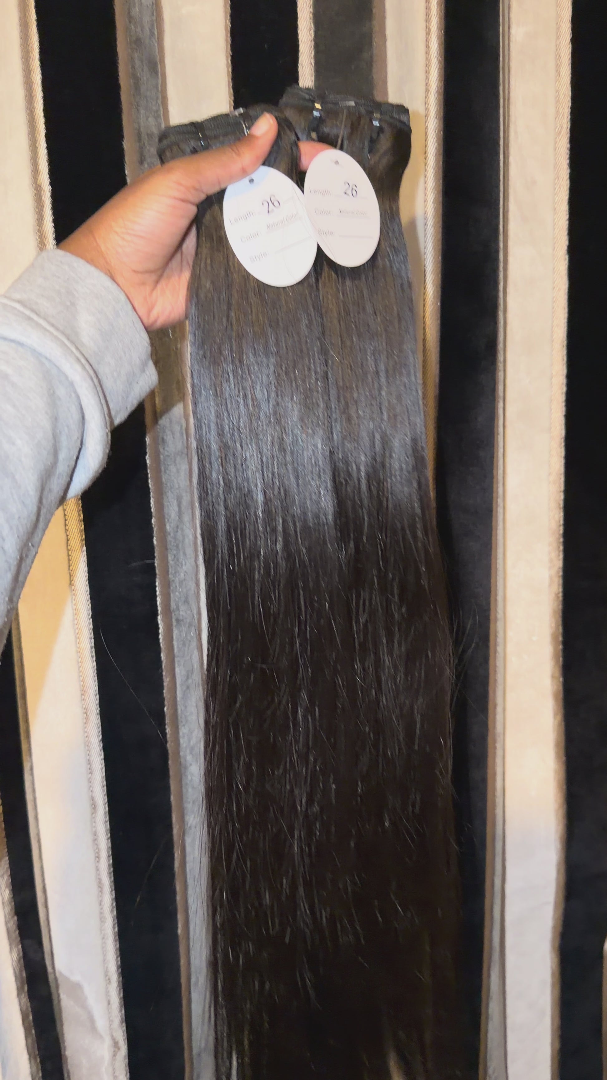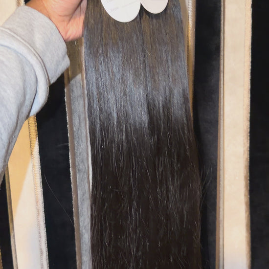 100% raw, single-donor Indian hair sourced directly from South India. Naturally straight with a soft, silky finish and double-drawn thickness from root to tip.